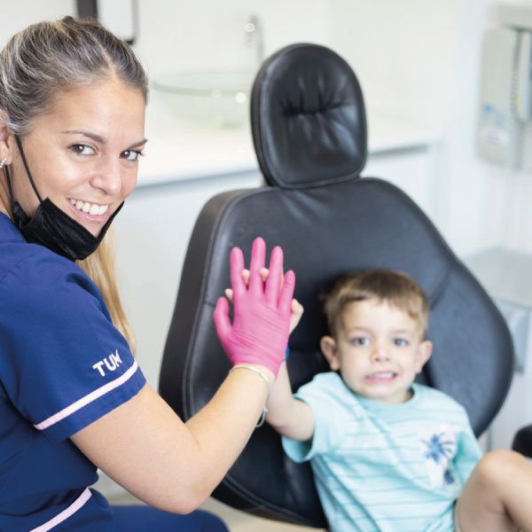 La odontopediatría es la rama de la odontología encargada de tratar a los más pequeños. Se aconseja que la primera visita se realice entre 1 - 3 años del niño /a, con el objetivo de prevenir traumatismos, caries o problemas asociados con la oclusión dentaria a causa de malos hábitos.
