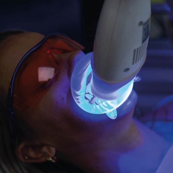 El agente blanqueador que se utiliza es el peróxido de hidrógeno (agua oxigenada), que penetra en el esmalte para llegar a las moléculas responsables de las manchas.
